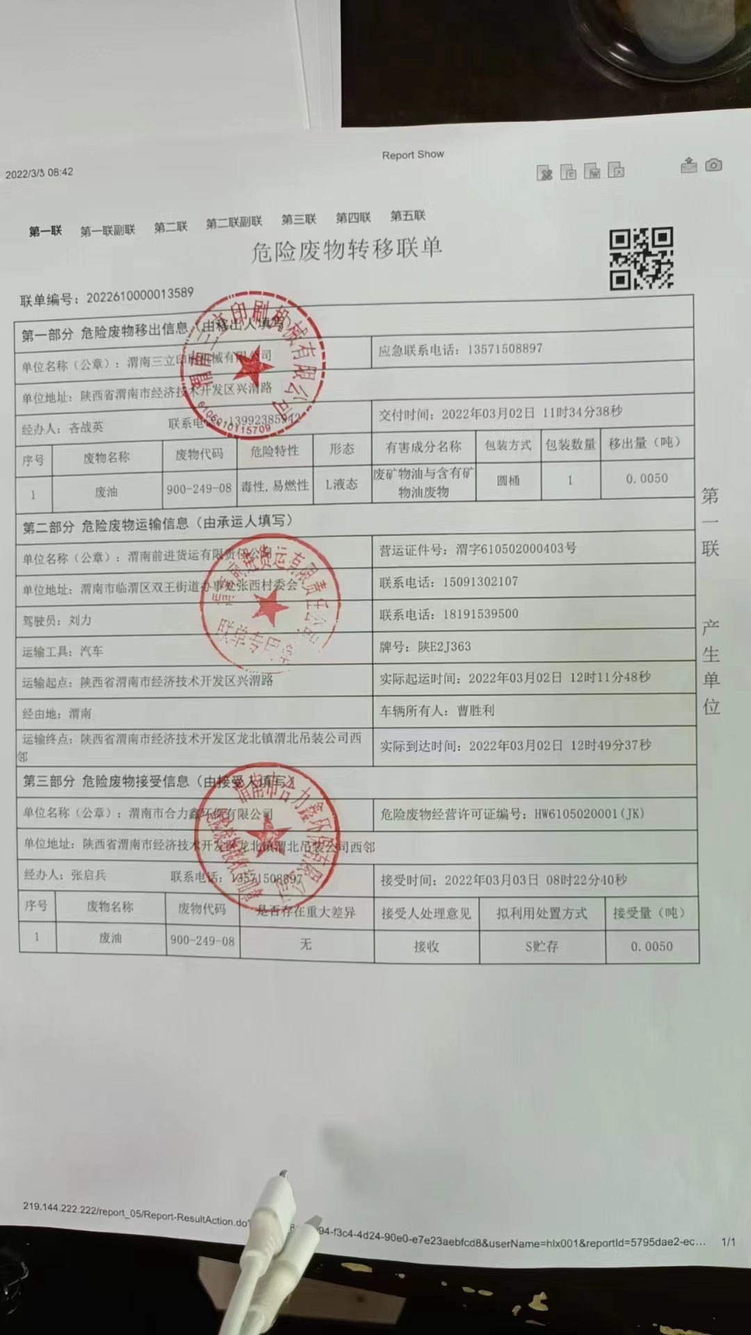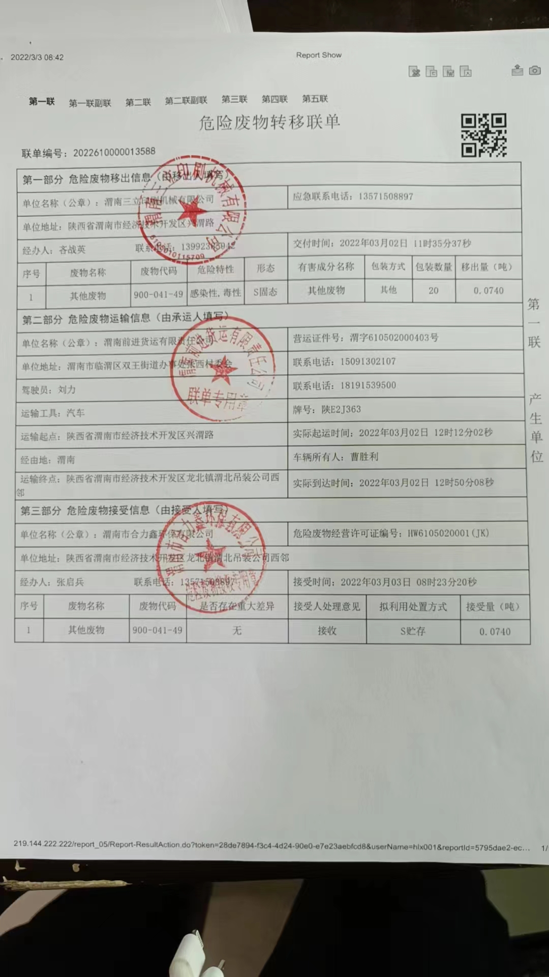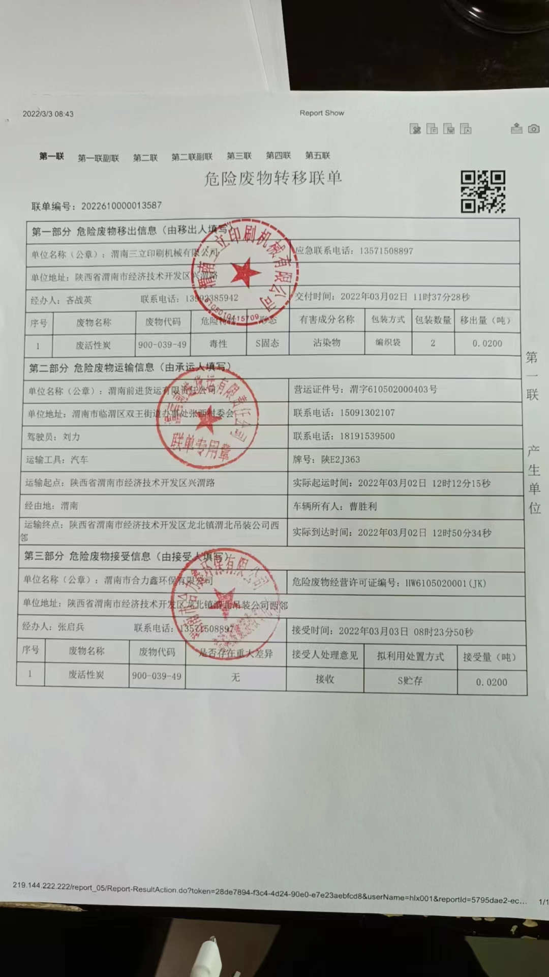危險(xiǎn)廢物轉(zhuǎn)移聯(lián)單